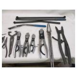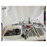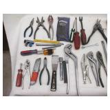 Stanley plane, 2' aluminum level,metal shears, squares,Ridgid 18" pipe wrench,wrenches,hammer, chisles plus more