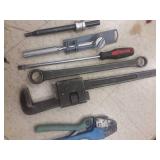 LARCO 18 INCH PIPE WRENCE, 2 FOOT SQUARE, RIVET GUN, 3/16 SPARK PLUG WRENCH, 1/2 RATCHET PLUS MORE