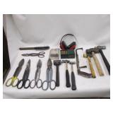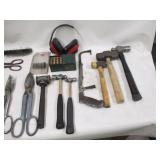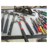 SHEET METAL SHEARS, STANLEY 14 INCH PLANE, (2) TOOL SHOP 16 OZ. FIBERGLASS CLAW HAMMERS, (3) ESTWING CLAW HAMMERS