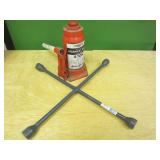 Bottle jack and 4-way lug wrench