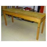 WOOD TABLE MEASURING 63 INCHES BY 20 INCHES BY 28 1/2 INCHES TALL