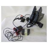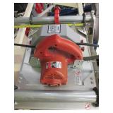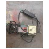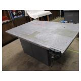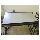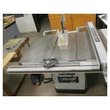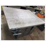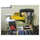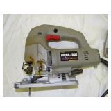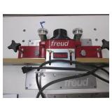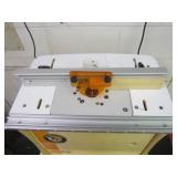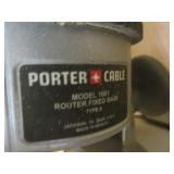 PORTER CABLE HEAVY DUTY ROUTER (TESTED AND WORKING) #1001 WITH FIXED BASE, MOUNTED IN A BENCH DOG PRO TOP PORTABLE ROUTER TABLE WITH 22 INCH DUAL POSITION FENCE, 2 1/2 INCH DUST PORT AND AN ALUMINUM MITER ACCESSORY TRACK. 24 INCHES BY 16 INCHES BY 20 INCHES TOP HAS A SMALL CRACK IN THE LAMINATE. COMES WITH A TABLE 3 FOOT BY 2 FOOT BY 3 FOOT ON 3 INCH CASTERS AND A POWER STRIP. NO SHIPPING