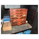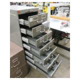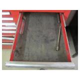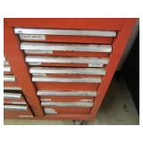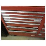 International 15 Drawer tool Cabinet on 5" Casters, good cond. Showing some wear (a quople door front handles are bent) comes with a few misc. Tools. No keys (sp) N/S
