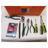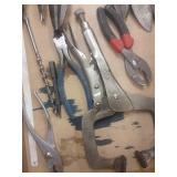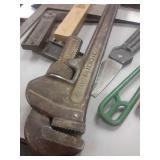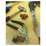 Stanley plane, 2' aluminum level,metal shears, squares,Ridgid 18" pipe wrench,wrenches,hammer, chisles plus more
