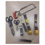 2' aluminum levels, Stanley plane,files,pliers, chalk lines, 6" C- clamps, center punches, squares, rasps, plus more:shipping $15