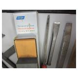 2' aluminum levels, squares, rubber mallots, Stanley wonder bars, rasps, hacksaw, plus more. Shipping $15