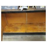 WOOD TABLE MEASURING 63 INCHES BY 20 INCHES BY 28 1/2 INCHES TALL