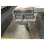 WOODEN BOX FILLED WITH TAPS AND DIES, SMALL VISE AND MORE, SEE PICTURES