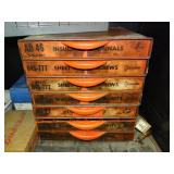 International 15 Drawer tool Cabinet on 5" Casters, good cond. Showing some wear (a quople door front handles are bent) comes with a few misc. Tools. No keys (sp) N/S