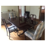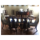 - High End, Rarely Used, Fairly New Dining Table, w/Pads, w/Leaves, Custom Upholstered Chairs (6), Thomasville