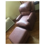 - High End Brown Leather Chair and Ottoman: