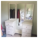 - White Bedroom Set; White Double Bed, Vanity, Bedside Table
