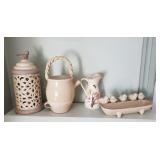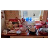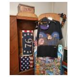Jewelry: Rings, earrings, necklaces, bracelets, pins, holiday including Sterling Silver, Turquois, Costume, and NIB hallmarks from QVC such as Carolyn Pollack, American West and Sincerely Southwest jewelry, PAZ Sterling many inlaid w/ Ancient Roman Glass, Honora Collection, Nolan Miller, KJL, Joan Rivers, and Sands. Many jewelry box, jewelry cabinet armoire, tabletop spinning mirrored jewelry box and small ones. Furniture: Vintage cane back sofa with matching chair and rocking chair, two corner cabinets, round kitchen table with leaf and 4 chairs, wooden Corner Chair with Woven Rush Seat, rocking chairs, Hitchcock limited edition Christmas Chairs, Pr of wood and glass shelving units, Acorn four poster double bed, dressing table w/ mirror, dresser, nightstand, single bed, Waterfall wardrobe / armoire, Caswell-Runyan Hope Chest, oak server, oak Alaska -Star oak ice box, Pennsylvania House end table, Maddox of Jamestown desk, Formica portable kitchen island / cabinet, Vintage 50's Retro Drop Leaf, Formica Top table by HOWELL w/ two chairs, vintage enamel top tables, bookshelf, chairs, tables, outdoor wicker, rattan set, bench Household: Tiffany style lamp and floor lamp, lamps, pictures, area rugs, Duraflame Electric Fireplaces, Shark cleaning appliances, air purifiers, portable air conditioners, fans, red cookware, red microwave, many pots and pans, coffee makers, Pfaltzgraff Winterberry service for 6 plus serving, STONEGATE Bavaria COUNTESS china, Wizard of Clay, pottery, Books, Christmas, Holiday, Bedding/quilts, deco pillows, Hot Point 23 1/2 x 26 x 35 chest freezer Clothing: Purses, clothing, shoes, coats, hats and portable storage units Outdoor: Lots of planters, decor, |