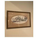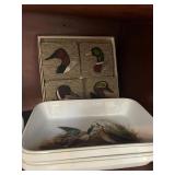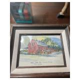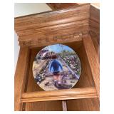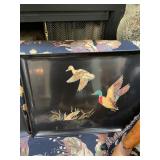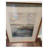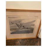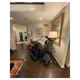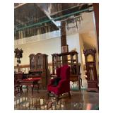 Foyer Cream colored China cabinet, I’ll be King and Cole Chyna set, Haviland the Mosher‘s thanks, Frederick learning plates, China, Braswell, Brazil, grass rabbit, folding top pedestal table, large portraits of nature book by James Lockhart, area rugs, Winnie the Pooh photograph, Brown power recliner, throw pillows, trend sligh grandfather clock, pair of Chinese brass figurines, Framed goose sketch by Richard bishop, “journeys end” framed print by Roland Clark, framed flower portraits, an official hand engraved Mallard by Orville Kuhl, official hand engraved pintails by Orville Kuhl, James the butler serving stand, vintage telephone
