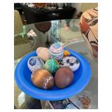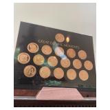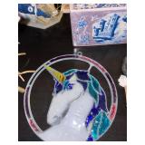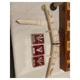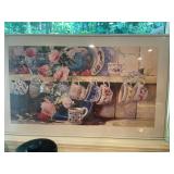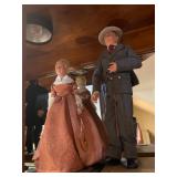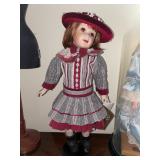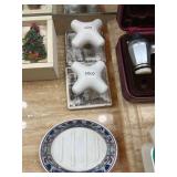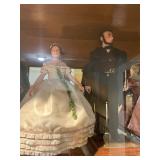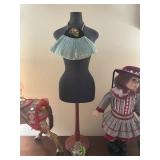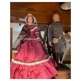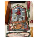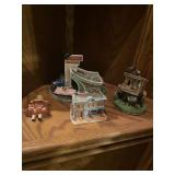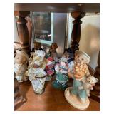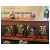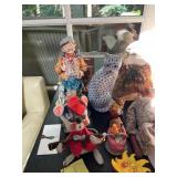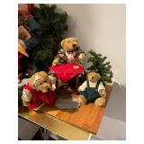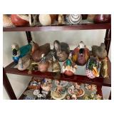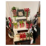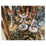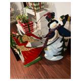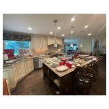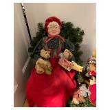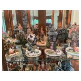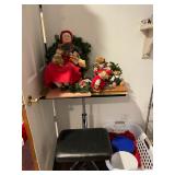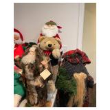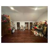 Christmas room & hallway Christmas cups, Christmas mugs, Santa mugs, Christmas tree wine glasses, large assortment of stockings, embroidered towels, Christmas lights, Christmas platters, bowls, tins, wreaths, vintage Christmas stuffed decor, S & D creations high-quality Santa sculptures, The rose cottage beautiful stone like dollhouse, wooden spiral staircase for doll house, The living image dolls the great Americans by the US historical society, Benjamin Franklin, George Washington, Thomas Jefferson,, Abraham Lincoln, Franklin Roosevelt, Martha Washington, Collection of miniature queen and style furniture for doll house, pastiche style quilt framed, oma koti quilted wall art