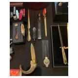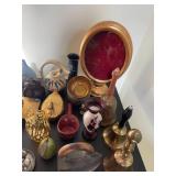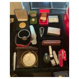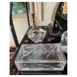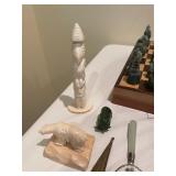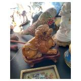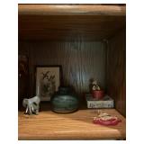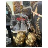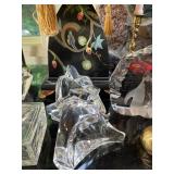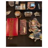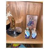 Cashout Pair of jeans food dog figurines, Asian decorative vases, Thai Buddha figurines, hand-painted blue and white vase, signed watercolor painting of black lab, museum of American folk art print, women’s earrings, costume jewelry, brooches, bracelets, turquoise jewelry, baccarat crystal bears, bone chess set, kukui nuts necklaces, baccarat Crystal Griffin, Chinese handpainted tea set, vintage lighters, herz miniature alarm clock, Charles and Warren Co. vintage alarm clock, pocket knives, bone cribbage pigs, vintage table lighter, orchid belt buckle, Buddha figurines, bone engraved sheath, ivory engraved mini vase, assortment of decorative knives, brass Mallard bookends, Lennox vase, picture frames, hardcover books, cookbooks, glass bird, jade chess set, John Glick decanter ceramic piece, cane chair, large Full body massage chair, table lamp, large framed garden steps, recliner, Waterford vase, Waterford crystal fish,