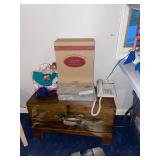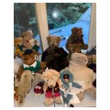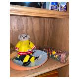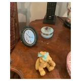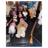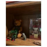 Bedroom 1 First, for collars, for Sean, vintage baby clothing, purses, painted iris chair, Mallard trunk, Steiff lavender teddy bear, Coventry folk funky lamp, collection of teddy bears, bagpipes, radio flyer, Beatrix Potter jigsaw puzzle, wooden duck lamp, collection of women’s handbags, longer burger baskets in cases, display cases, papier-mâché clown, carved wood lamp of hunter man, wooden Pinocchio doll, large teddy bears,