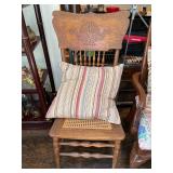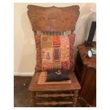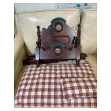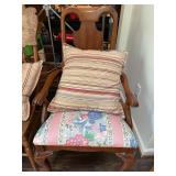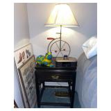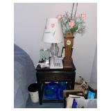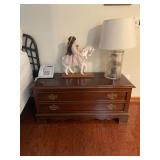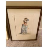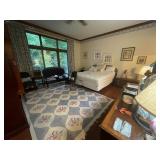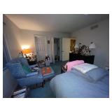 Bedroom 2 Books, native American dolls, floral lamps, federal style dresser and matching nightstands by Gumps design, blue floral wing back chair, antique solid wood chair, full bed with boxspring, framed artwork, oil lamps, candle stick holders vintage artwork, Blue ceramic cat from Italy, showerhead for two attachment |
