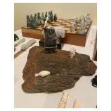Cashout Pair of foo dog figurines, Asian decorative vases, Thai Buddha figurines, hand painted blue and white vase, signed watercolor painting of black lab, museum of American folk art print, women’s earrings, costume jewelry, brooches, bracelets, turquoise jewelry, baccarat crystal bears, Asian bone chess sets, Asian jade chess set, kukui nuts necklaces, baccarat Crystal Griffin, baccarat crystal koala, Waterford crystal Bird, Waterford crystal fish, Waterford crystal bear, Chinese handpainted tea set, vintage zippo lighters, herz miniature alarm clock, Charles and Warren Co. vintage alarm clock, pocket knives, bone cribbage pegs, vintage table lighter, orchid belt buckle, Buddha figurines, bone engraved sheath, bone engraved mini vase, assortment of decorative knives, brass Mallard bookends, Lennox vase, picture frames, hardcover books, cookbooks,m, jade chess set, John Glick decanter ceramic piece, 1900’s caned seat pressed back oak chair, large Full body massage chair, table lamp, large framed garden steps, Waterford vase, bone figurines, area rug, bookcase, blue crystal bowl, red Waterford crystal bowl, Mikael redman figurines on turquoise, Asian tile figurine, bone carved dragon vases, bone carved dragon, jade bear figurine, bone carved totem, books, K. McGregor sketch, “winter marsh” print by Roland Clark, world menagerie lamp, Cartier desk clock, Lady and the Tramp animation cells