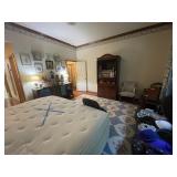 Master bedroom Chinese six panel room divider, pair of pink and white floral lamps, “lauren” doll by Phyllis parkins, Franklin heirloom dolls, Female French dress form, native model show horse, watercolor of Yates cider Mill, watercolor of depot, rochester Mi, hand blown glass vase, scarves, Drexel 10 drawer dresser, large floral area rug, armoire, board games, large wood carved satay with matching chairs, end table, for hats, knitted hats, sun hat, footstool, arm chair, with wood carved dining chair, DVDs, CDs, cassettes, Chinese fans, antique quilts, porcelain panda statue, equestrian hats, panda lamp, floral lamp base, Chinese wood carved nightstand, pillows, “the latest fashions” print, framed portraits, “Cassandra” by The Collectables, vintage wooden trunk, glass spare lamp, wood stepstool, women’s lingerie, flower prints, hand colored engraving, marguerite de France print, Samsung TV, “wings of the morning” by Roland Clark, Picture frames, John Risley figural standing lamp, small wooden end table, ceramic vase, curling irons, massager, shower purification system, Rochester bicentennial commemorative print 1776 to 1976, men’s Nordstrom pajamas, electrical neuromuscular stimulator, heating pads, linens, women’s shoes, belts, posters