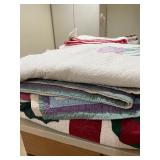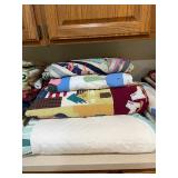 Laundry room MASSIVE collection of handmade quilts, laundry baskets, laundry room decor, shark vacuum, mop, mattress pad, sheets, home phone, large dog bed, dog gate, lightbulbs, outdoor cushions, scarves