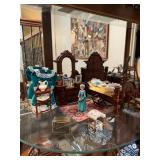 Display room Brass duck bookends, wood duck hanging lights, brass Mallard, chess table with brass insert, set of four yellow floral chairs, antique baby rocking basket, baby clothes, fabric, Christmas costumes, basil lift off the cleaner for pets, High chair, paint Chinese virus, brass planter, vintage suitcase, snowman decorative rug, Bear archery Company, vintage cradle, floral pillow, colorful sofa, decorative pillows, needlepoint pillows, teddy bears, cat pillow, ornate purple and green lamp by marbro, Bartholomew fire patrol wood carriage, quilted rug, Huge collection of Disney figurines many with certificates of authenticity, Disney’s the lion King figurines, Disney’s Aladdin figurines, Disney’s Mulan figurine, Disney’s Peter Pan figurine set, various Tinker Bell figurines, Dumbo and the stork figurine, Hercules figurine Jiminy cricket series of figurines, Winnie the Pooh Peter Pan figurines, the jungle book figurines, Pocahontas figurine, snow white figurines, Mickey goofy and Donald caroling figurine, watch me Mickey Mouse figurine, Donald Duck figurines, collection of panda ceramic figurines, grass panda, porcelain lady figurines, Winnie the Pooh porcelain figurines by Poon friends, maleficent porcelain figurines, five dollar one sleeping beauty figurines, porcelain dolls, royal dalton basset hound figurines, yeah drill 6211 dog figurine, Royal Copenhagen dove porcelain figurine, Collection of vintage playboys from 1960-1980, Beatrix Potter‘s collection of porcelain figurines, Barbie dolls in fantastic condition, sweet valentine Barbie special edition, savvy shopper Barbie, movie studio Barbie, Diane von Furstenberg Barbie gold label, gap Barbie, Zack Posen Barbie, Michael Jackson doll, the gene collection mill Odom, Simply Gene doll and costume, simply gene dolls, Simply Jean closet and clothes, floral figurines, Chessboard with wooden chess pieces, Detroit hockey superstars pucks, toy bicycles, brass wood storage, wooden mallards, fireplace accessories, porcelain iris flower, brass pandas, Alice in wonderland figurines with certificates of authenticity, Maureen Nalevanko Dorothy, cowardly lion, scarecrow, tin man dolls, Disney villains of Cruella Deville, Christian authentic German nutcracker wooden pieces, porcelain dolls by Tony Young, Wizard of Oz porcelain dolls, Japanese geisha figurines,