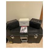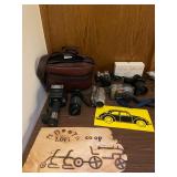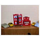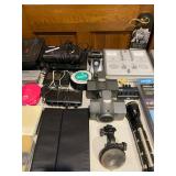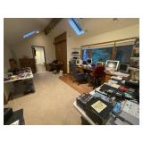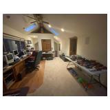Office Virtual reality 3-D headset by utopia 360, final cut pro four, outdoor home in Tenna by SiriusXM, Zion DJ table, cost DVD machine, Apple TV, aperture, Nati audio RNX6, Optimus stereo disco mixer, HP mobile printer, all tech Lansing pair of speakers, clear pair of speakers, Magnavox HD TV monitor, Sony monitor, vintage iMac circa 2002, Vintage iMac power Mac, Magnavox monitor, Panasonic vintage TV, Sony face to face video processor, boombox, wicker duck, Tamron lens, Sony camera, collection of knives, granite nice, swords, Minolta maxim, Volkswagen Beetle 1951 by maisto, jo-Han models Chrysler, GM mini tool box, glass cars, glass Lamborghini, Ford model T piggy bank, Tonka vintage beetle, PT cruiser model, solida Volkswagen convertible beetle, burago beetle, The essence of the automobile Chrysler designer collection sculptures, snap on Limited addition truck, maisto Pt cruiser, Collection of model cars, toy cars, motor max, Bordens ice cream truck, car banks, Texico model, Franklin mint cars, camera equipment, illuminator, light deflectors, huge box lights, tripods, camera bags, pro master studio lights