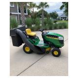 Action Features: A well maintained John Deere lawn tractor, Double Pedestal Mahogany Dining Table and Eight Maitland-Smith Chairs, fitness machine, and Sterling Silverware.