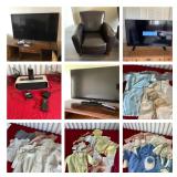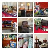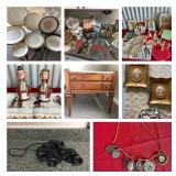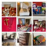 Some furniture, lots of household cleaning supplies and personal items, vintage collectibles, vintage baby clothes (some handmade) and more