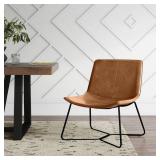 Lach Lounge Chair. Color-Caramel.It's built with a metal base and features two sled-inspired legs that bend inward to create an X-shaped footprint. The seat and full back are wrapped in faux leather and filled with foam for just the right amount of support as you sit. Overall 30.5'' H x 26'' W x 27'' D