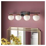 Pierre 4 - Light Dimmable Weathered Black/Autumn Gold Vanity Light. A clean, minimalist style is amplified with autumn gold accents suspended from a contrasting weathered black framework. Overall 8.5'' H x 33'' W x 7.75'' D