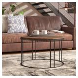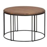 Anja Coffee Table. Color-Brown/Black. Striking a round silhouette with tastefully molded edges, the tabletop is crafted of solid reclaimed wood, showing off natural graining and character thanks to hand finishing and distressing. Overall 18'' H x 28'' L