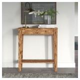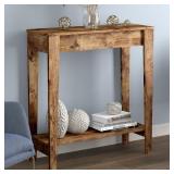 Heavener 31'' Console Table. Color-Brown. It's made from engineered wood that has a distressed look to it. Plus, it features four slightly tapered legs that hold up a lower shelf for books and additional accent pieces. Overall 34'' H x 31'' W x 11.5'' D