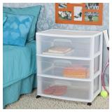 3-Drawer Storage Chest. Color-White. This utility cart is the perfect choice for storing a variety of things. This versatile utility cart can useful in your home or office. Overall 24'' H x 21.75'' W x 15.25'' D