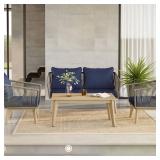 Outdoor Acacia Coffee Table. Color-Natural. Add this acacia coffee table to your outdoor living area to give yourself the space you need. Made from acacia wood, it stands up to outdoor conditions. 16.54 Inches (H) x 39.37 Inches (W) x 21.65 Inches (D)