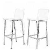 (Set of 2) Chrome Acrylic Bar Stools. The acrylic bar stool is crafted from 1/2" thick clear acrylic with a simple chromed steel base. Its 29" seat height makes it perfect for use with standard bar height tables and high counters. 16.00 x 18.00 x 39.75 Inches