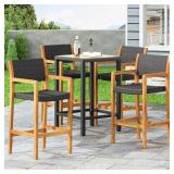 (Set of 5) Outdoor Acacia 30" Patio Bar Stool. Color-Black. These are finished with beautifully tapered legs that strike a perfect balance of rustic charm and modern sophistication for all to admire. Overall 45'' H x 22.75'' W x 21.75'' D