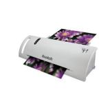 Scotch Thermal Laminator Value Pack, 9" W, with 20 Letter Size Pouches. Features a two-roller system that has two temperature settings for 3 mil and 5 mil. Saves time with a four-minute warm-up, feeds 11.5 inches/minute, with pouch release mechanism.