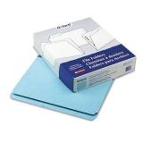 1 Box- Staples Pressboard File Folders, Single Tab, Letter, Blue, 25/Box. Label these file folders to help you categorize and locate a stack of documents easily. The 23-point stock includes environmentally friendly postconsumer material and is durable enough to withstand frequent handling while resisting bending or warping.