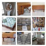 SALE HIGHLIGHTS: Ethan Allen, Milk Glass, Dept. 56-Snow Villages, Farm Table, Tools, Beautiful Handmade Furniture, Ruby Red Glassware, Penn House, Storage Cabinets, & MORE!!!