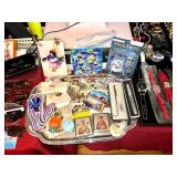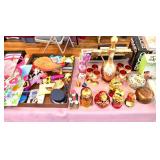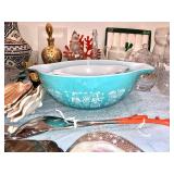 Collectibles *1999 American Girl Doll Molly With Clothing and Accessories. Bicycle, Drop Leaf Table, Chairs, Bed and More! * Vintage Pyrex Amish ButterPrint 3 Piece Blue Mixing Bowl Set * Parisian and Fashioned Themed Collectibles * Tiffany And Co. Boxes * Art Work * Art Glass and Decanters * Vintage Stuffed Animals + Wind Up Popeye the Sailor Man * Disney Plush Characters * Designer Merchandise Bags and Boxes from All Over the World * Travel Related Ephemera * Fashion Related Ephemera * LLL Water Globes * Metal Eifel Towers From 4 feet tall to 12 inches * Vintage Naval Blankets * Russian Nesting Dolls * Books of All Subjects * Crystal Stemware * Victorian Blue Glass Pitcher Gold Gilt & Enamel With Glasses 1900'S * Vintage French Amber Glass Decanter & 6 Cordials Gold Gilded Enamel * Designer Perfumes, Colognes, Soaps and Toiletries * Vintage and Designer Glasses and Sunglasses * Tons of Baskets and Woven Containers * 3 Vinyl Upholstered Kitchen Chairs * Antique Wooden Trunk * Antique Map of Paris
