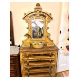Furniture * Beautiful Antique Bedroom Set Featuring Full Headboard, Footboard, Frame, Nighstand and Side Table * Antique Chickering & Sons Baby Grand Piano * Parisian Themed Hall Table * Metal Upholstered Hall Tree Chair * Beautiful Antique White Louvered Entry Cabinet * Antique Rattan Wooden Chair * Wicker Clothing Hamper * Mirrored Dresser * Set of 3 Wooden Nesting Tables * Brown Leather Sofa