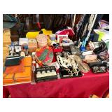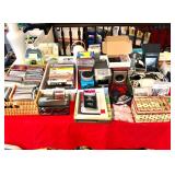 Miscellaneous * Metal 4 Shelf Storage Rack * Metal Cabinets * 4 Drawer File Cabinet * Metal Card Catalog Cabinet * Sewing Notions * Vintage Metal Floor Safe * Mini Fridge * Alcohol Bottles * Antique Brass and Wrought Iron Headboard and Footboard * Vintage Holiday Decor(Lighted Tree, Bubble Lights, Spike Bulbs and More! * Photo Frames * Pallets * License Plates * Lil Blizzard Table Fan * Propane Grill * Louvered Wooden 2 Panel Screens * Flower Pots * Folding Kitchen Directors Style Chairs * Dozens of Brand New Hotel Slippers * Giselle Style Exercise Glider * Electric Fireplace * Electric Heaters