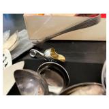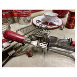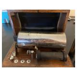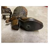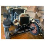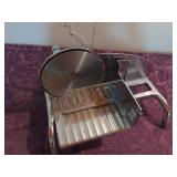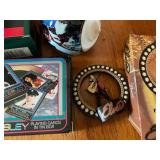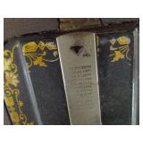 Awesome collection of Elvis, LP’s & 78’s, Antique Toys, Glassware, Vintage, Collectibles, Tools, Ephemera, Cast Iron Cookware, Old Photographs and More! Pick Up: Thursday, Aug. 19th; 10am-6pm. -1 Here's What We Are Doing to Keep You and Our Staff Safe! Your safety and our staff's safety is paramount, so we have taken steps to ensure you are safe during pickup. Please practice social distancing and wear a mask (our team members will be wearing them as well.) We are limiting the number of winning bidders to 5 per 30-minute time slots which you can select using SignUpGenius. Otherwise, we are happy to ship smaller items to you at your expense. Thank you for participating! -2 Shipping Policy Shipping and handling is available. However, costs are not included in the final price. All parties are responsible for paying their own shipping costs once the amount has been determined based on the local USPS shipping rates. If an item will not fit in a USPS flat rate box, DO NOT BID ON IT. We will not ship it other than USPS Flat Rate. Your items will be charged to your credit card and an updated invoice with tracking number will be emailed to you. 1 Solid Wood Cabinet Top Cabinet top of solid wood. Door glass with one shelf inside and four openings on the outside. Piece has some nicks. Contents not included. 1 Vintage Upper Cabinet Vintage wooden cabinet top with glass doors. 2 Antique Sewing Machine Antique White sewing machine. Capable of being unfolded damage to the top and two of the drawers. Missing pieces from drawer handles saved. Drawers can be opened but can be difficult. 3 Cast Iron Patio Bell Welded Cast Iron Bell With Chips Unmarked 4 Patio Swing Painted Unbranded Patio Swing. Few Chips In Paint APX 4 FT Wide 3 Feet Tall 5 Modern Coffee Table Cool Modern Coffee Table With Glass See Through Shelf 6 Wooden Vintage Rocking Chair Wooden Vintage Rocking Chair On Springs With Designed Cover 7 Vintage Playing Card Table With Two Chairs “The Durable 2 Fold Card Table” With Two Chairs 8 Eight Fort Massac Folding chairs Eight fort Massac Folding chairs all wooden construction with leather seats some have marks on them believe to be vintage. 9 Vintage Wooden Table Vintage Or Antique Wooden Table Which Is Unmarked With Drop Leaf 5,7 Wide by 3 Feet long by 31 Inches Tall 10 Antique Oil Heater Black Perfection oil heater. Parlor stove. 11 Thomas collectors edition Thomas collectors edition radio, Model number BD Dash 100 12 Philco Vintage Radio Vintage Philco Wooden Radio Model And Seriel Number Gone With No Back Piece 14 Antique Red Velvet Picture Album Beautiful Oval Picture of Children on cover. Approximately 8x18. Most pictures are approximately 5x6. Ladies, Gentlemen, Children, and More. 15 Antique Photo Album with Pictures, 1917-1929 Football, Army, group of friends and family, old cars, buggy, and more. Good condition. 15a Antique Photo Album From 1917-1922 Lots of Army, trains, planes, football, chickens, fun and family, and more. 15b Large Scrap Book and Photo Album 1944-1946 Post cards, photos, brochures, paper clippings and more. 15c Photo Album From 1942-1945 Large album full of Navy Photos, family, some scrap book items, post cards, and more. 15d 1913 Yearbook, two Army Photos in Eagle Frame The Kanza 1913 yearbook, and double frame with eagle and soldiers. 15e Group of Vintage Polictcal Pins and More Knox, Willkie, Truman, Brenda Starr, 3 Clean up week, Bote Dry for me, Tess Trueheart and more. 15f 2016 Chiefs Fantasy Camp Signed Football Signed by Bobby Bell, Will Shields, Jan Steneurd, Anthony Davis, Dante Hall, and more. 15g Group of Vintage Empherma Old photos, paper scraps, two post cards, brochures, cards, hand painted lady on cover of program and More. 16 Wooden Footboard And Headboard Vintage Wooden Headboard and Footboard with detail and some scratch issues (no markings or brands) 17 Voit Brand Foosball Table Voit Brand Fools Ball Table In Ok Shape Two Guys Missing Head No Other Markings. 18 Swivel Stool/Chair Mid century modern bar chair. 19 Antique Silverplate Flatware Set Antique silverplate flatware with carrying case from Nobility Plate. 20 Large Set of Tosaporn Gold Toned Silverware At least 8 pieces of all, 10 steak knives, fork, salad forks, smaller forks, 12 teaspoons, tablespoons, knives, 12 little spoons, butter knives, 12 assorted serving pieces, and more. In wood three tiered case. 20a Two Antique Pictures with Oak Frames Wedding scene and couples. 18x23 and 18x24. 21 Vintage Toy Circus Bear Wind up bear on motorcycle, rides in circles, not sure it works. Made in Japan, still has fabric. 22 Vintage Tin Toys Vintage Tin Rotary Dial Phone Toy and Vintage KamCap Brand Benjamin Franklin Toy Cash Register and it still works!! 23 Vintage Kids Bank And Statue Vintage Kids Rotary Payphone Coin Bank and a Black Cat Figure (base is cracked) 24 Vintage Heater Vintage heater The cedar is metal and in great condition. 24A Antique First Aid Kit Antique first aid kit. A boxed thermometer, beaker a tool, medicine bottles, and boxed bandages. 24b Miscellaneous Vintage Items Micronta Sound Measuring Tool Home Blood Pressure Monitor vintage tin cans and wooden Box 24c Large Group of Red Vintage Kitchen Items Metal apple, white and red enamel plate and cup, two egg beaters, two strainers, potato masher, ice cream scoop, Scotch Ice, and more. 24d Vintage Caterpillar Toy Vintage caterpillar toy wind up in good condition. 25 6 Vintage Enamel Pans 13x20 black and white, 12x12 blue bowl, black and white bowl, two black and white sauce pans, bowls and more. 25a Vintage/Antique Glass Chandelier Nice Vintage Glass Antique Chandelier Tested And Working 26 Large Group of Aluminum Glasses, Pitcher and Bowl Gold pitcher marked Regel, 4 glasses marked West Bend, 8 marked made in Italy, and one shorter marked Bascal. Six bowls marked Sunburst. All different colors. 27 Vintage Toy Red Wagon and Tin Truck Bed Red wagon is unmarked and green truck is missing it too. Marked Nylint. 28 South Bend