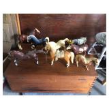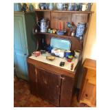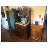 FURNITURE: Oak high chest w/ mirror, Wooden shoe cabinet, Antique tool chest w/ early paint, Antique Hutch, Primitive cupboard, Dovetailed chest, Mahogany bookshelf, Entertainment center, Knick nack shelf, 7 Pc. kitchen set, Rocker, Tables, Bed, Wooden wall cabinet, Patio and porch furniture, Folding Chairs, Chairs, Mirrors and much more.