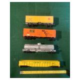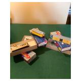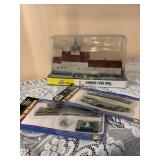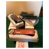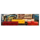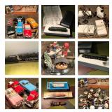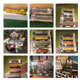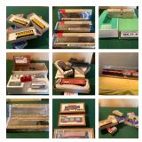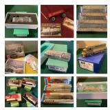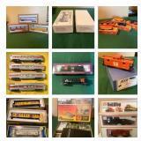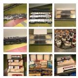 I've learned so much about trains. We have Z scale, N scale and O scale, HO scale and S scale; Marklin, American Flyer, Walthers, Lemax, Atlas, Atheern, Bachmann, Micro Trains, and a few others I'm forgetting. Engines, cars, tracks, building kits, accessories, and displays. One complete Marklin countryside set up, plus two other model displays. Many of these items are either new in box or have original packaging.