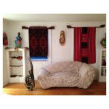| Hunt Estate Sales is happy to invite you into this Newton home. This doctor of psychology was a world traveling fashionista with an eye for funky art, furniture, furnishings, clothing and jewelry. The sale starts Friday, December 26th. Yes, the day after Christmas! The sale continues Saturday and Sunday, December 27th and 28th. Come spend your hard earned dollars and gift money on a second-hand-holiday! Not only will you find a truly unique shopping experience you will also find that your dollars will go much farther than at the (dreaded) mall. Two walk in closets packed with clothing and shoes, from vintage to new with tags. Designers include Fendi, Versace, Givenchy, Missoni and more! Walls of heels, pumps, boots, flats and moccasins. Rolling racks of Tibetan lamb jackets and vests and fine leather jackets, skirts and pants. Clothing collected from around the world. Expect to see 'made in Italy' and 'made in France' alongside embroidered Mexican tunics, Balinese dresses and authentic Native American leatherwear. Jewlery both fine and costume. Sterling belt buckle weighing almost a pound! Original art from around the world! A collection of Carlos Chavez works. This Peruvian artist has exhibited at Washington D.C.'s Museum of Modern Art of Latin America. His works are bold, vivid and linear. Although based on his interpretations of everyday life there is a certain fantastical element which can not be denied. Other artists include Paul Rahilly, Eiichi Kotozuka and "the Picasso of the Carribean" Jose Fuster. Too many to list! What you see in the pictures is only a fraction of what's available for sale. Framed handiwork from India and Indonesia. Tapestries and wall hangings too. Australian Bark Paintings. African carvings. There's even a Totem pole! From wall sized pieces to tiny pieces; there is something in this collection for everyone. Funky furniture too! Glass table with geometric wooden base, oversized upholstered chair in the style of Modern Mid Century designer Milo Baughman, asymmetrical couch, sculptural glass coffee table and other accent pieces like a carved alligator side table and an intricately carved trunk made out of a tree trunk. Housewares and kitchenware too; all, in their own rite, statement pieces. Rugs from oriental to Polish and Native American. This was truly a unique women and she spared nothing outfitting herself and her home. Come join us in some post holiday cheer! Numbers will be handed out at 8AM. Doors open at 9AM sharp. Don't hesitate to ask if you have any questions although we do not give out prices before the start of the sale. Cash and cards accepted. Happy Hunting! |
