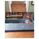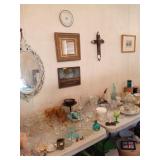 This small home is packed with goodies. We will probably have to limit access due to size of the house and amount of treasures in it. We have Silver jewelry with turquoise indian Bear Claw etc. and gold jewelry Rings and nugget bracelet,bakelite jewelry,costume jewelry,Seiko Dive Watch, Gruen Watch, local art ,antique clocks,statues,China, wheat china set, glassware, crystal,Stuben,Pyrex primary color bowl set, fire king, Corning ware, kitchen pots and pans, some erotica books, vintage mens clothes and newer clothes, mens cowboy boots,belts,high end men's shoes, Mid Century Chest of Drawers,mid century full size bed, mid century lamps, cow hides,cow hide pillows, some Asian items, some day of the dead pieces, linens, tapestries, CDs, onyco stereo equipment and Bose system,director bar stools,marble top end tables,drop side end table, loveseat or small sofa, ottoman, long storage trunk,throw pillows,garage some tools,garden,old furniture,butcher block, and more misc items. |