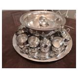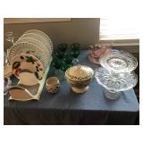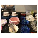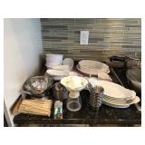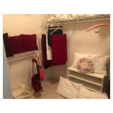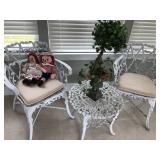 Wrt. iron 3-pc. outdoor set also 5-pc.cast aluminum patio set, 'Calico Corner' custom small scale sectional sofa, Hickory - White credenza, 5-pc.dbl. pedestal D.R. table w/4 arm chairs, double bed, queen bed, chest, night stands, dresser, linens, decorative pillows, small safe, mirrored shelf 2-pc. foyer set, computer/printer stand, wicker chaise, 3-tier piecrust table, 5-pc. bridge set, shark vacuum, small floor safe, lamps, wall decor & more!