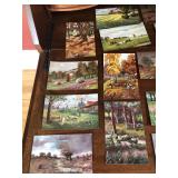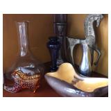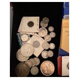 ANTIQUES & COLLECTIBLES: Tiffany sterling silver bookmark, Phoenix studios artist signed art glass vase, Antique rugs, Shawnee Cookie jar, Nambe vase, Carved silver candlestick, Set of Enesco mallard ducks, Armadillo purse, Foreign coins, Morgan silver dollar, Silver proof set, Silver half dollars, Standing Liberty quarters, Mercury dimes, Barber dimes, Foreign coins, Antique NY post cards, Large collection of nice early art postcards printed in Germany, Mackenzie Childs coffee pot kettle, Large Ball mason jar, Glassware, Antique basket, Heavily carved frame, McCoy planter, Costume jewelry, Reverse painted painting, Marble base table lamp, Brownie camera, Remington Rand typewriter, Antique mirrors, Artwork featuring oil paintings and prints, Peekaboo pinup nude glass set of 4, Carved bird, Carved flamingo, Set of brass lamps, Carved wooden mask, Aurora slot cars and accessories, Lund wooden snow skis, Unique figural lamp set, 1884 framed certificate Chevrolet racing suit, and much more.